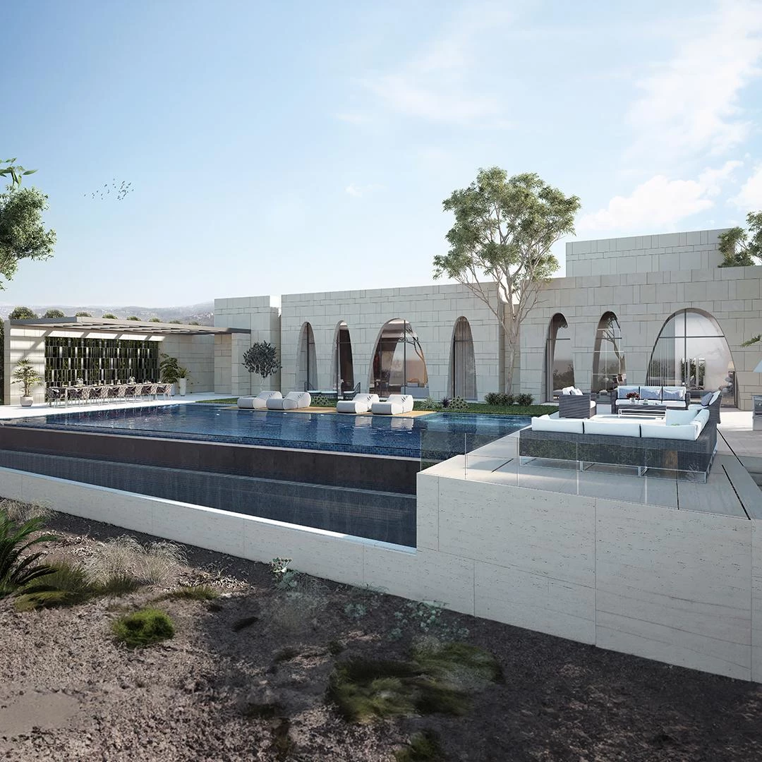 The NJ Chalet is a modern extension to an existing house that was built in the sixties. Our program included renovating the interior of the existing house, building the new chalet and reception areas, and connecting the both by a large landscaped area with a pool and outdoor services.