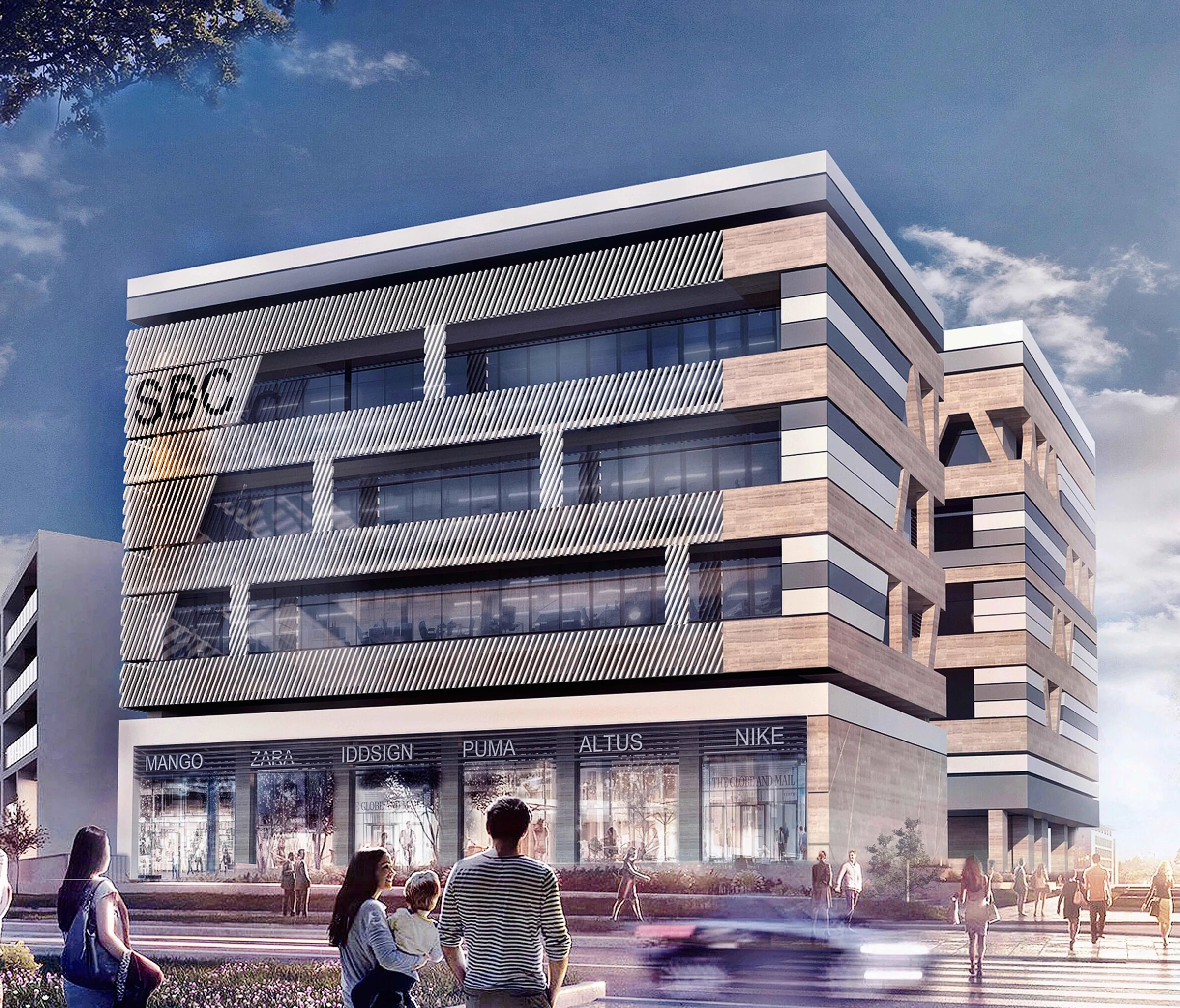 The mission on the SBC centre was to create a modern low rise office block that maximizes the use of a relatively expensive plot within the prevailing building rules and regulations. The building was divided into two blocks with the first containing office and commercials spaces, and the other continuing only office. The back block was raised above ground to accommodate the required car parking.