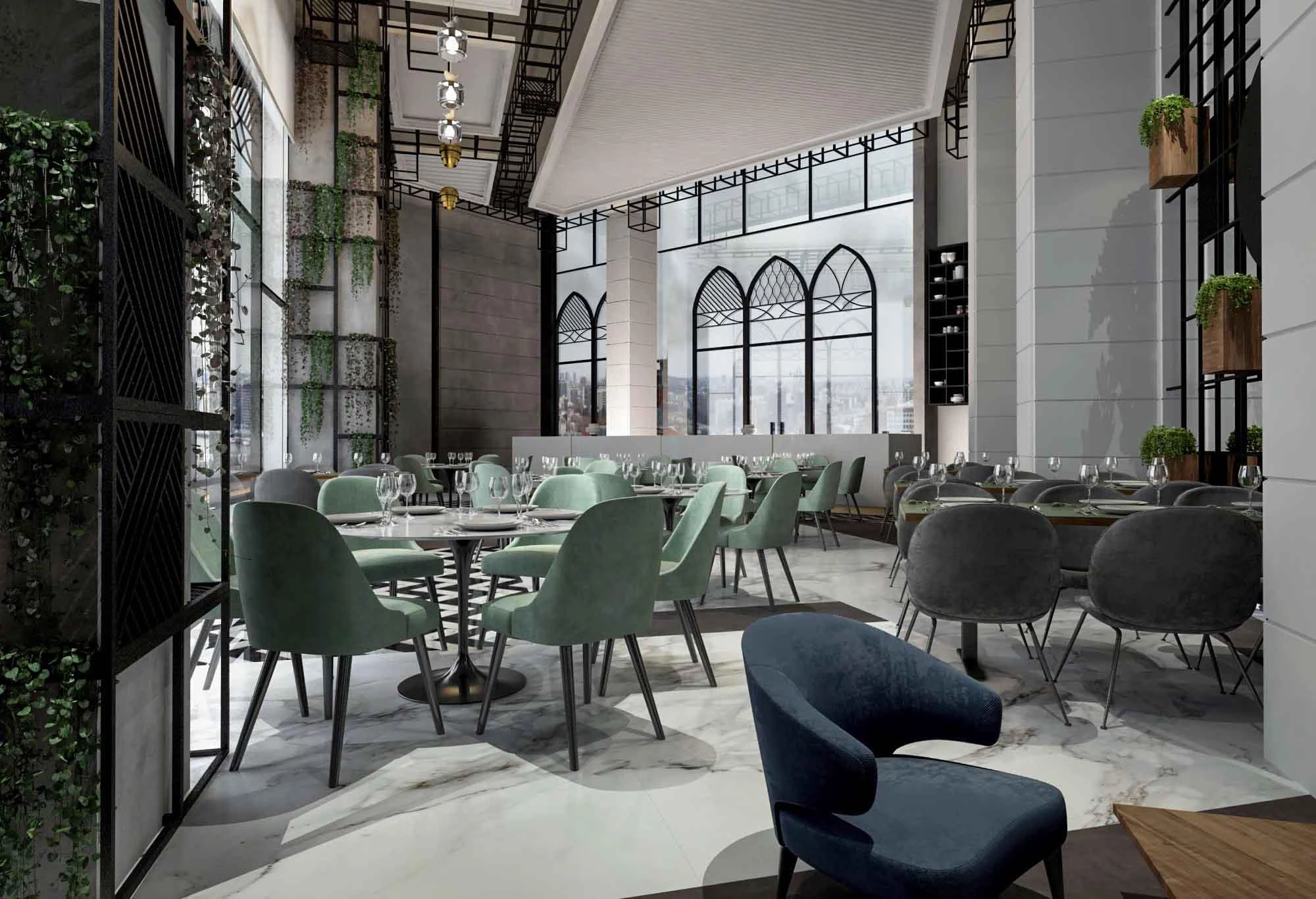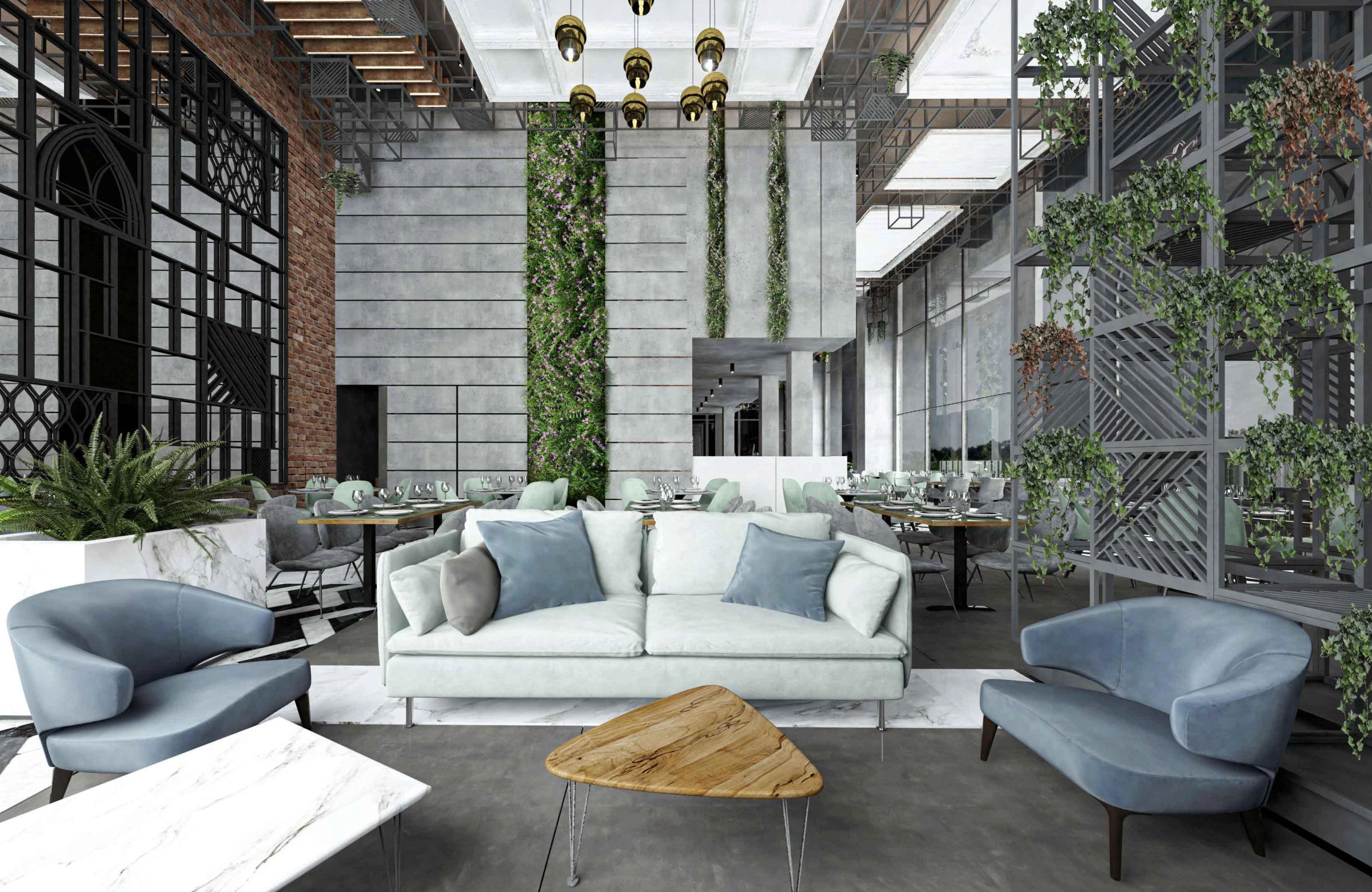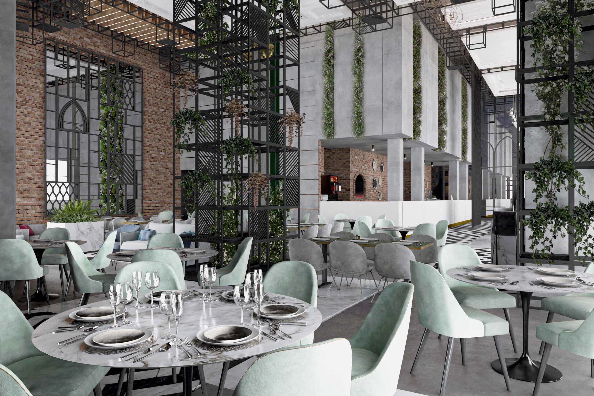 Aimed at a larger audience and a younger age group, we wanted to create a vibrant design that fits for an exotic lunch, an early breakfast, and a business coffee at the same time. Our concept for the brand was to envision the restaurant as an outdoor area inspired by the outdoor seating areas in a traditional Lebanese house. Such outdoor areas enjoyed a metal or wood structure that is covered by climbing plants or grapes.