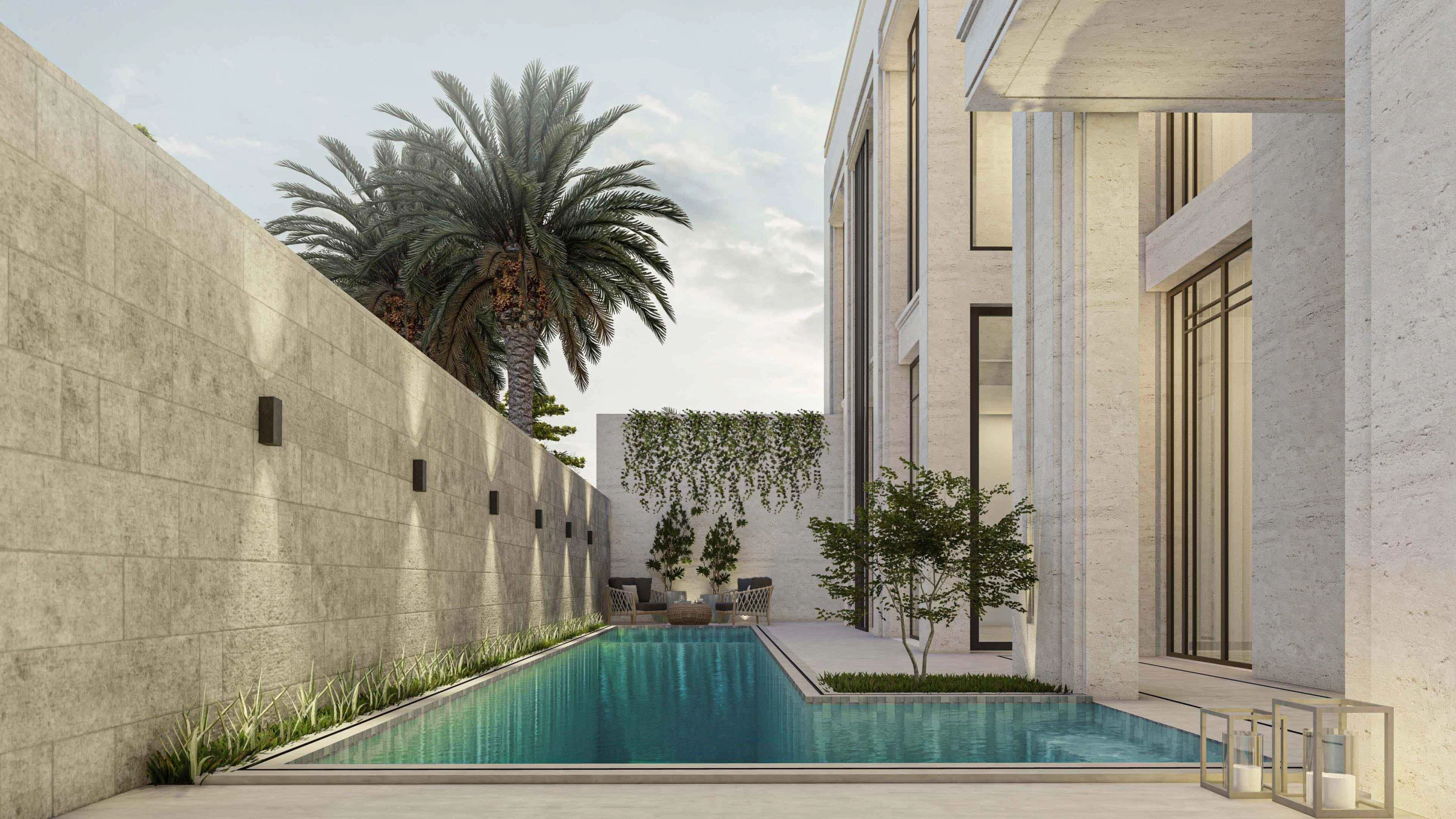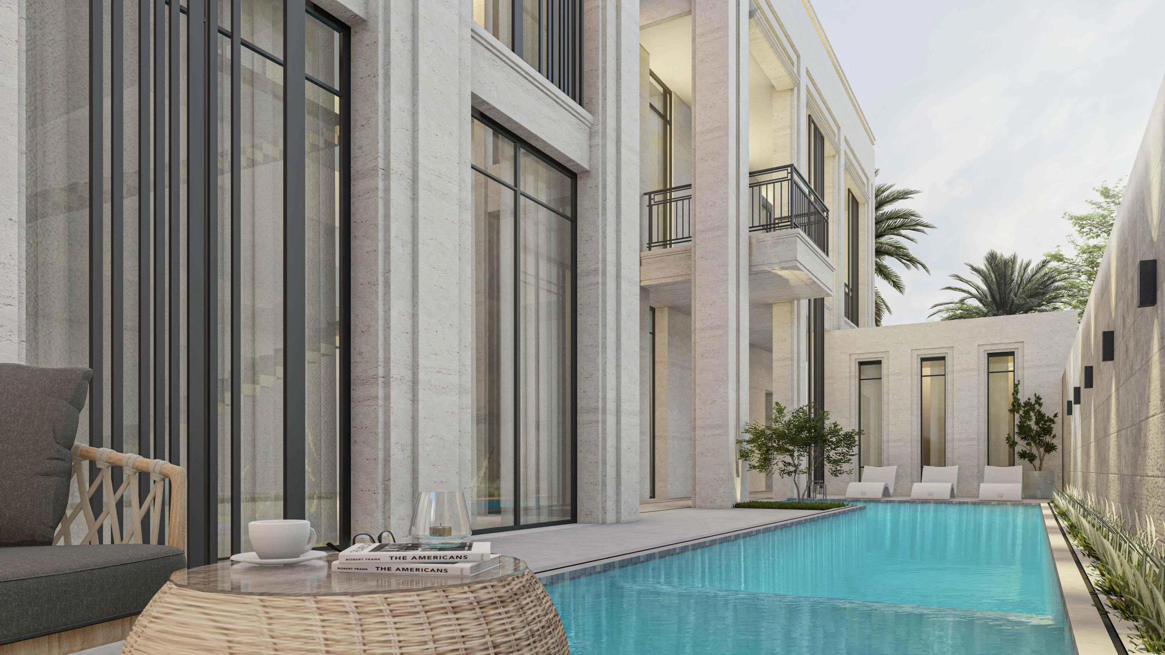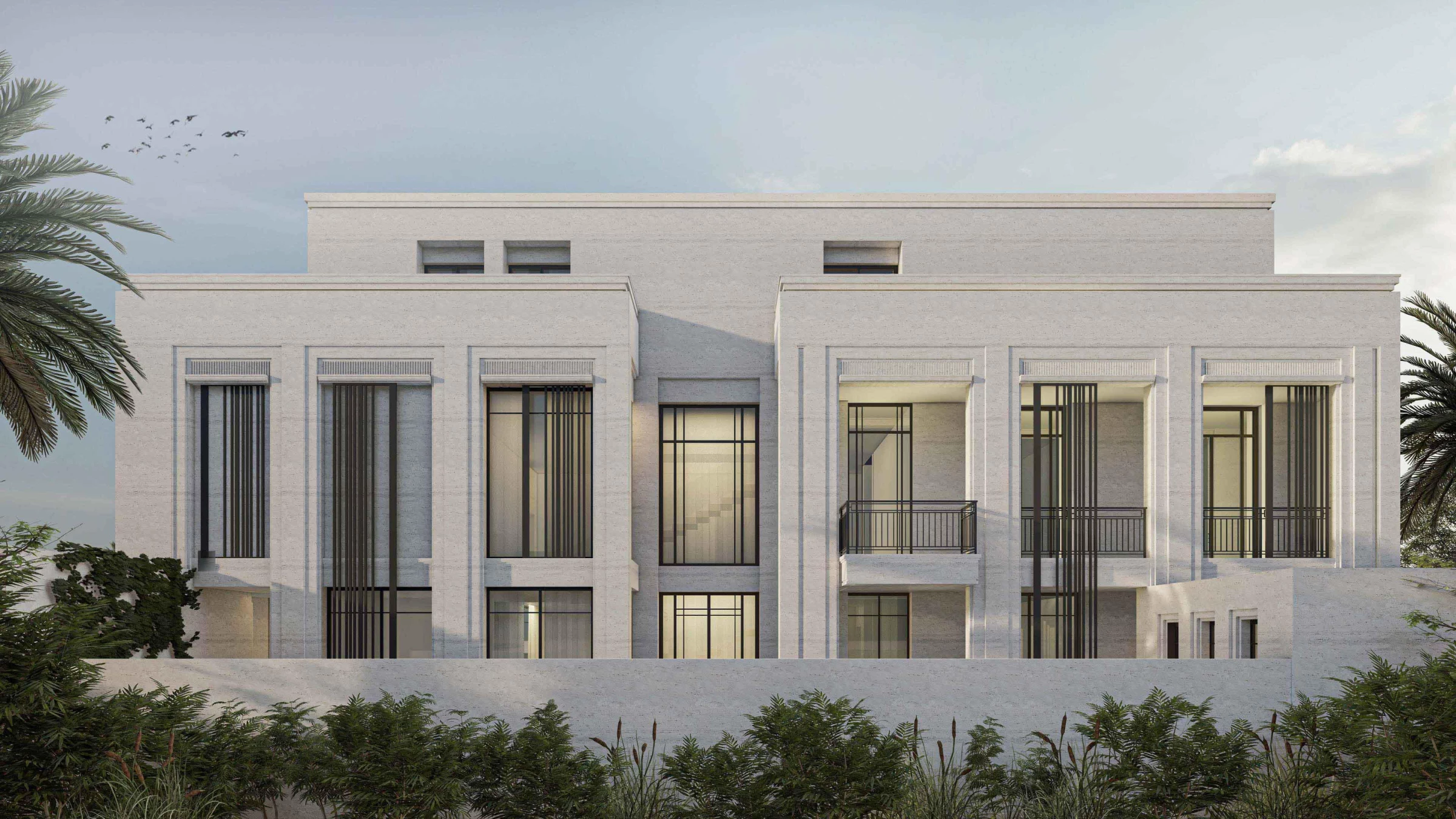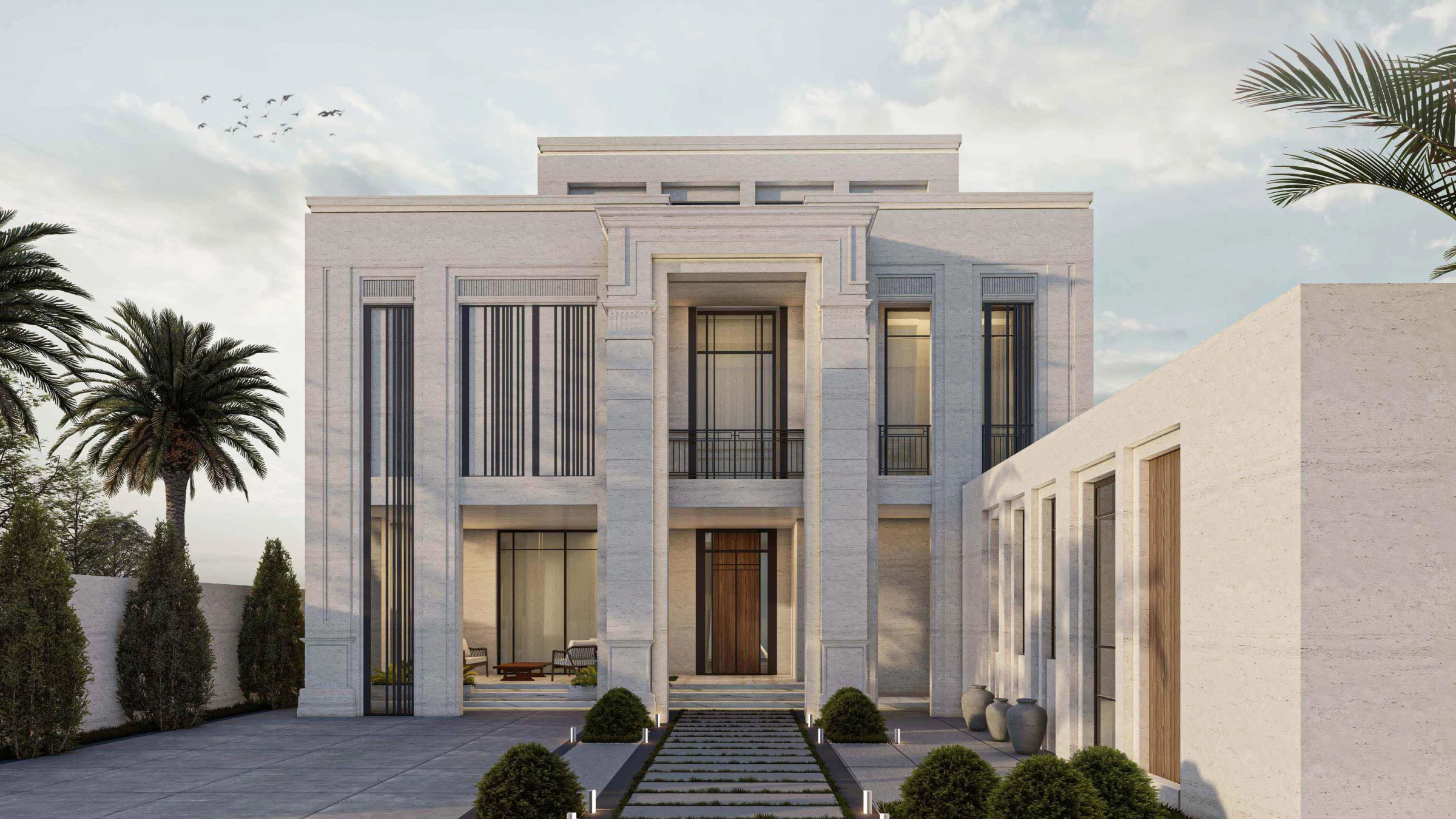 The MO Villa is a case study for a new typology on the common strip villas in the city of Riyadh in KSA. While the client opted for a neo classical appearance for his house, we were left free to develop a more dynamic floor plan.