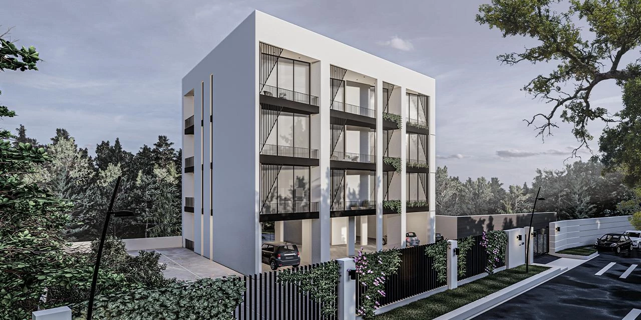The site itself has no specific attributes either than limited views to the sea side from afar, where all the main facades and terraces were oriented. Our proposal was a simple rectangular block made of 3 floors, with a ground floor for services and a basement to be used as a car parking for the apartments.
