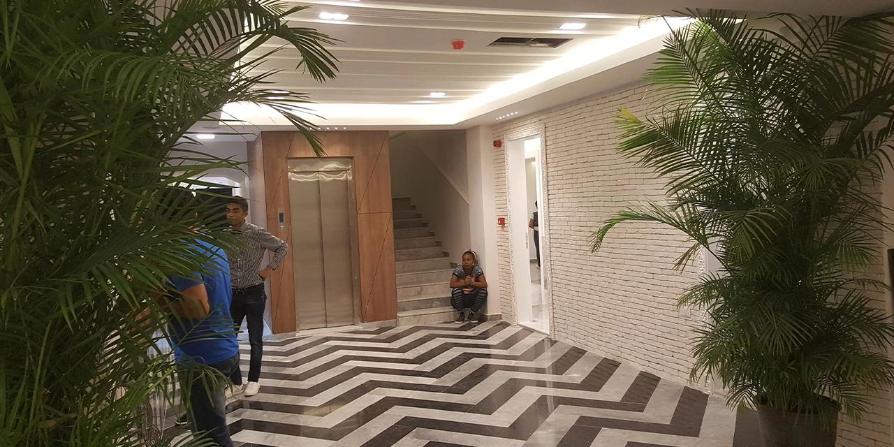 Due to the oversize of the main hall both in floor area and height, our deigned approach was to defragment the space to a more human scale. The floor plan and the ceiling were divided into a series of spaces, each enjoying its own design and patter. The material pallet included traditional cement tile, traditional cement flooring, and marble tiles, all of which are coming themes in the local Lebanese houses.