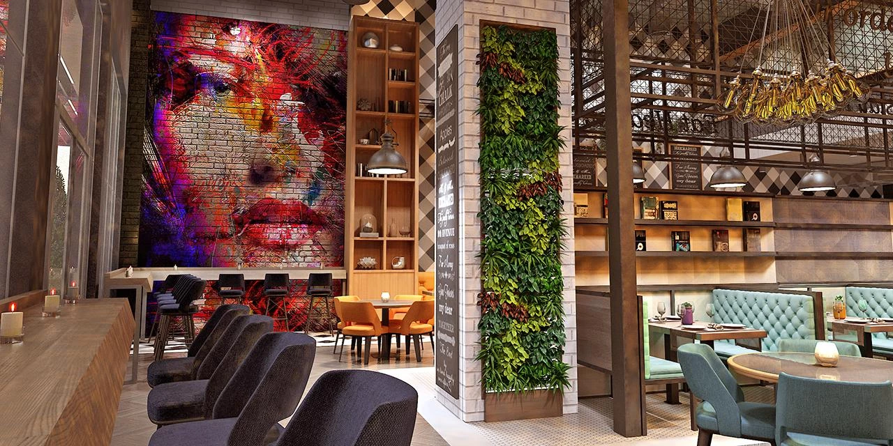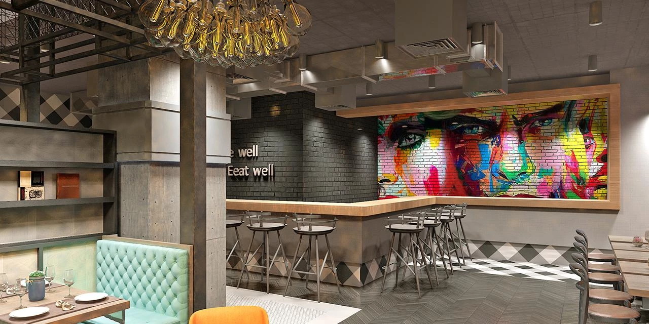 Our deign echoed the brand requirements by providing a visually striking design, extremely detailed, and complemented with extensive use of graphics and prints. The walls and ceiling were decorated with varying materials and themes, mainly in wood and metal.