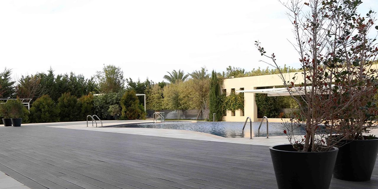 Our landscape proposed a more natural look for the garden and outdoor areas to contrast with the rigid and formal building shape, by proposing more informal and free flowing lying and patterns. We have removed all existing vegetation and replaced them by local vegetation that require less maintenance, and used the new layout to create serval zones that can be used at different times of the day and by different type of guests.