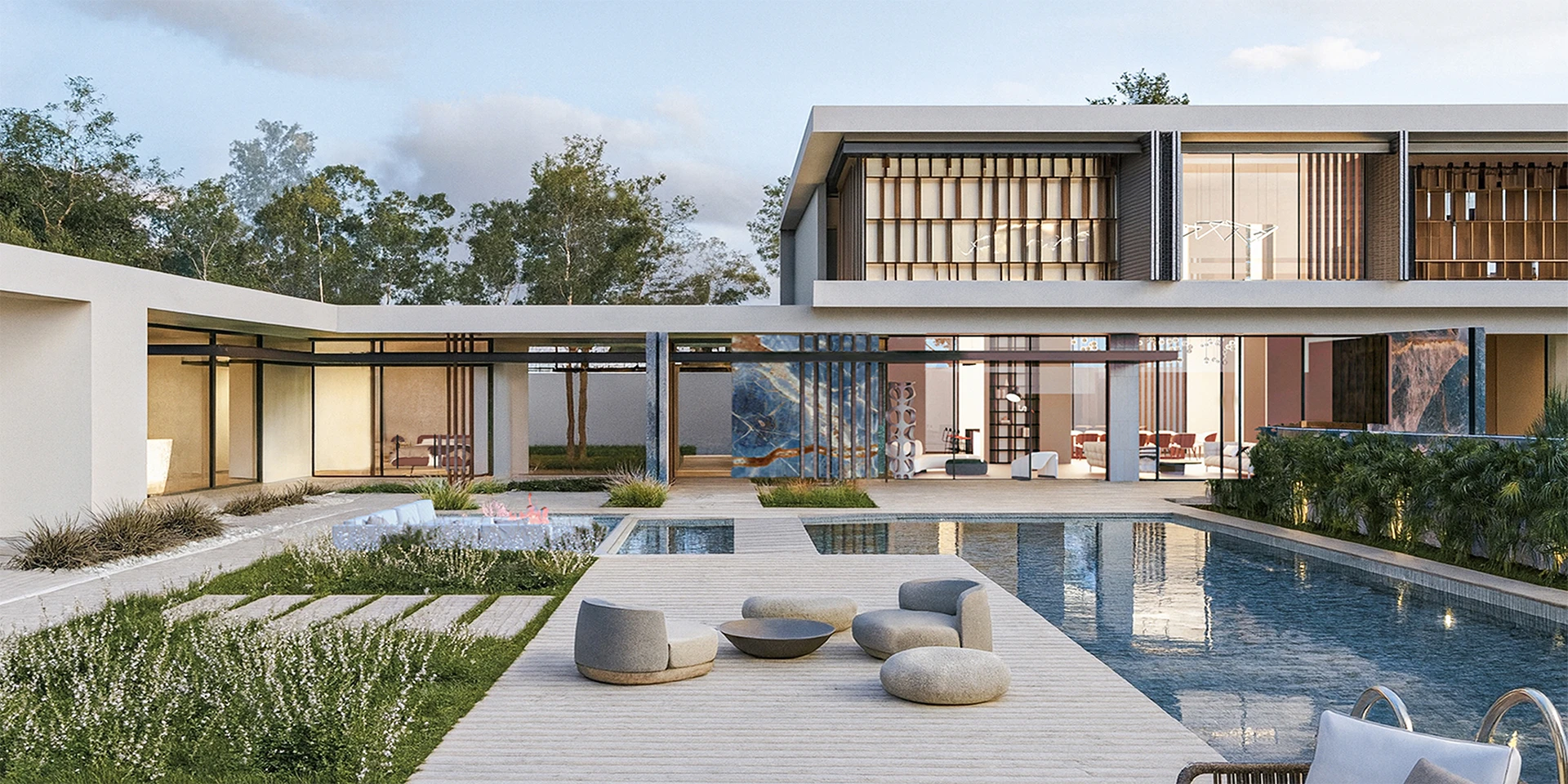Our design approach is a House As Resort concept, inspired by contemporary resorts offering varied amenities for recreation, while conserving spaces for privacy and practical use.