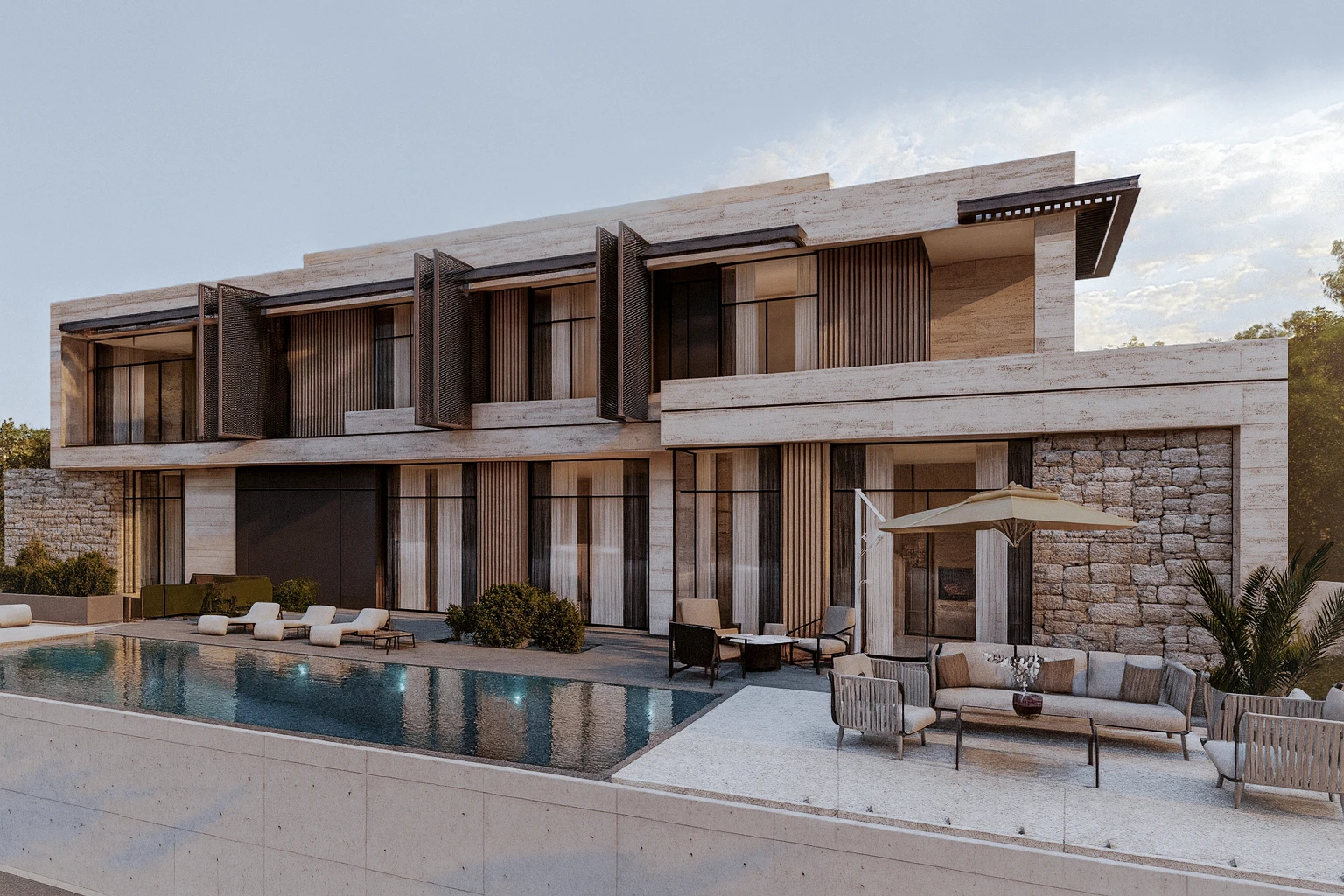 The IY House enjoys a breathtaking view, on a steep cliff, facing the Mediterranean sea. The project plot however, is very tight, with close neighbors to the North and South facades.