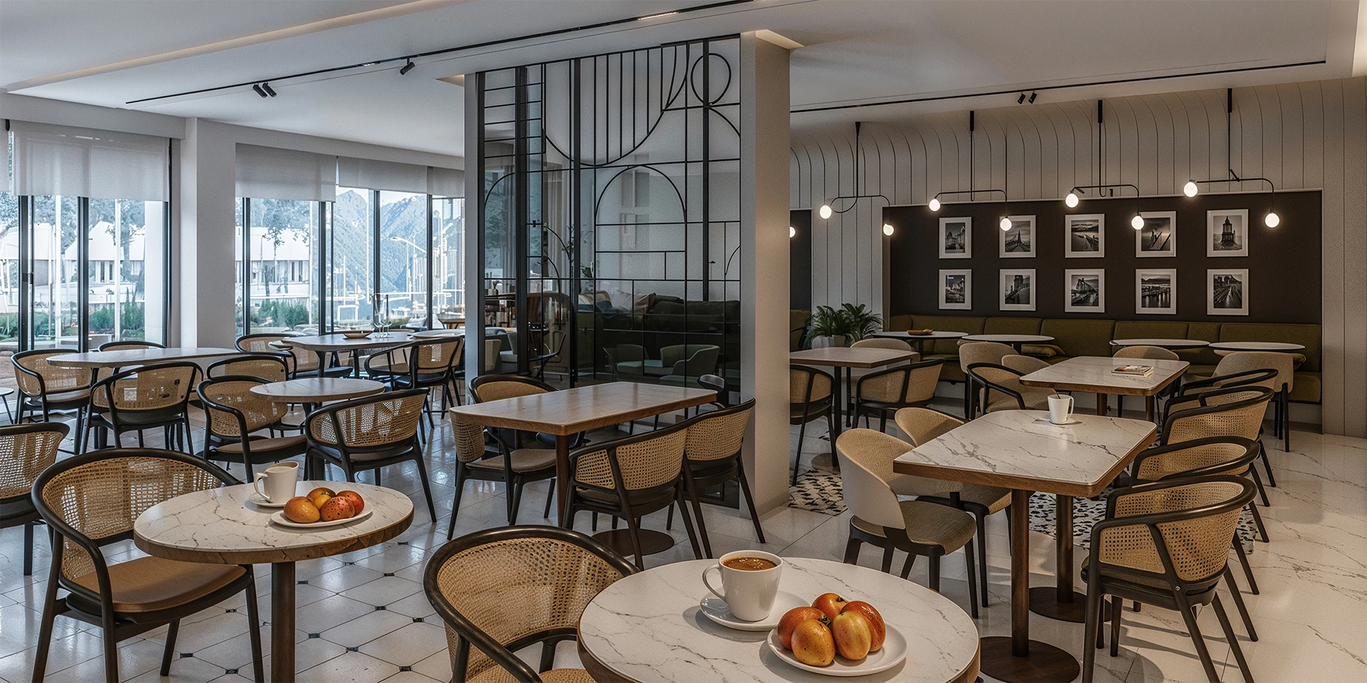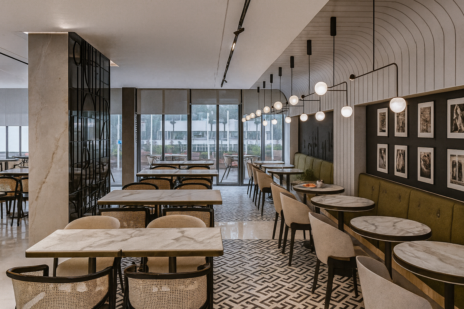 The design was heavily inspired by the scenery of Paris, recreating the feeling of dinning on a Parisian brasserie or coffee shop with French design elements, re introduced in a modern way.