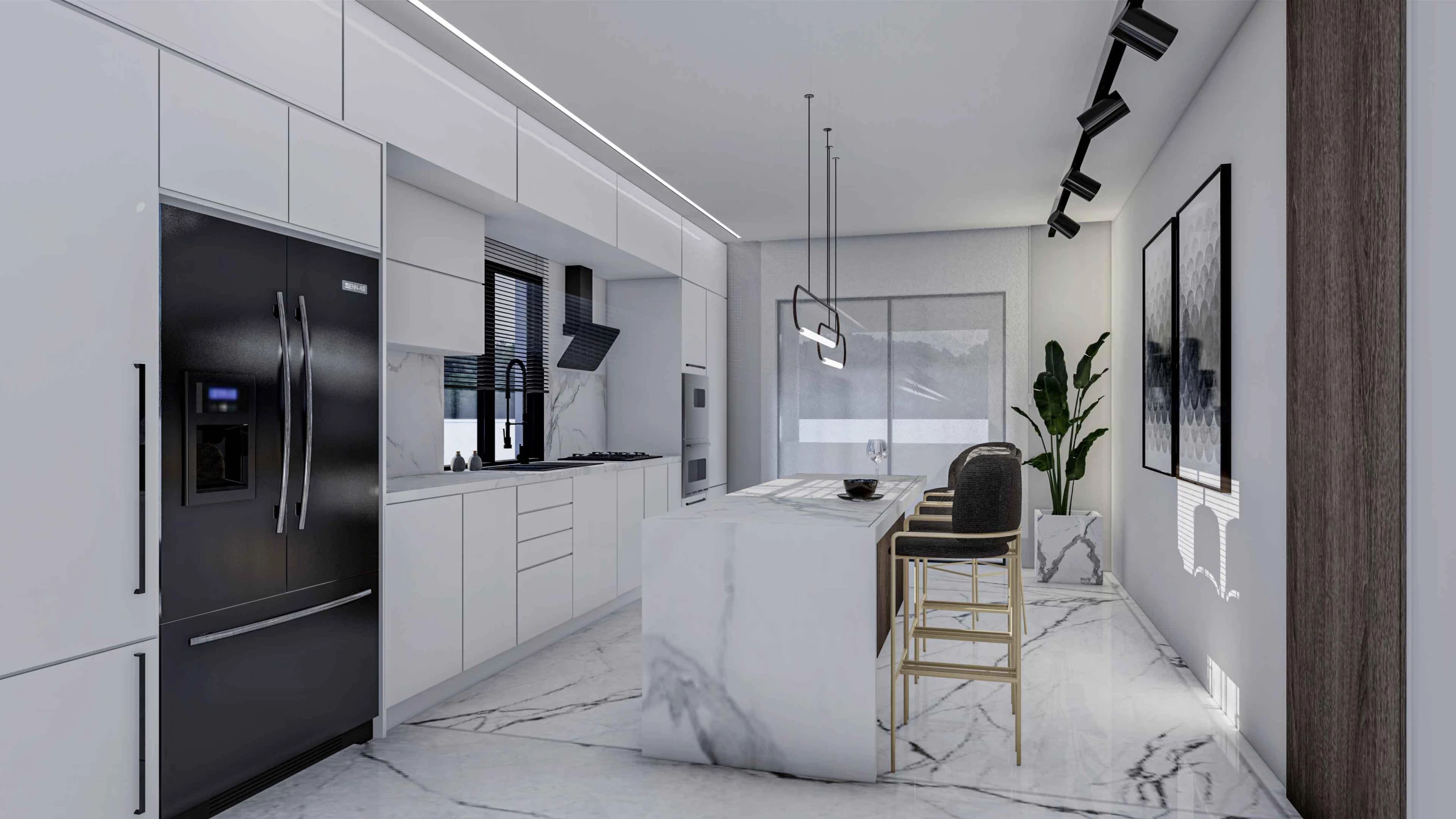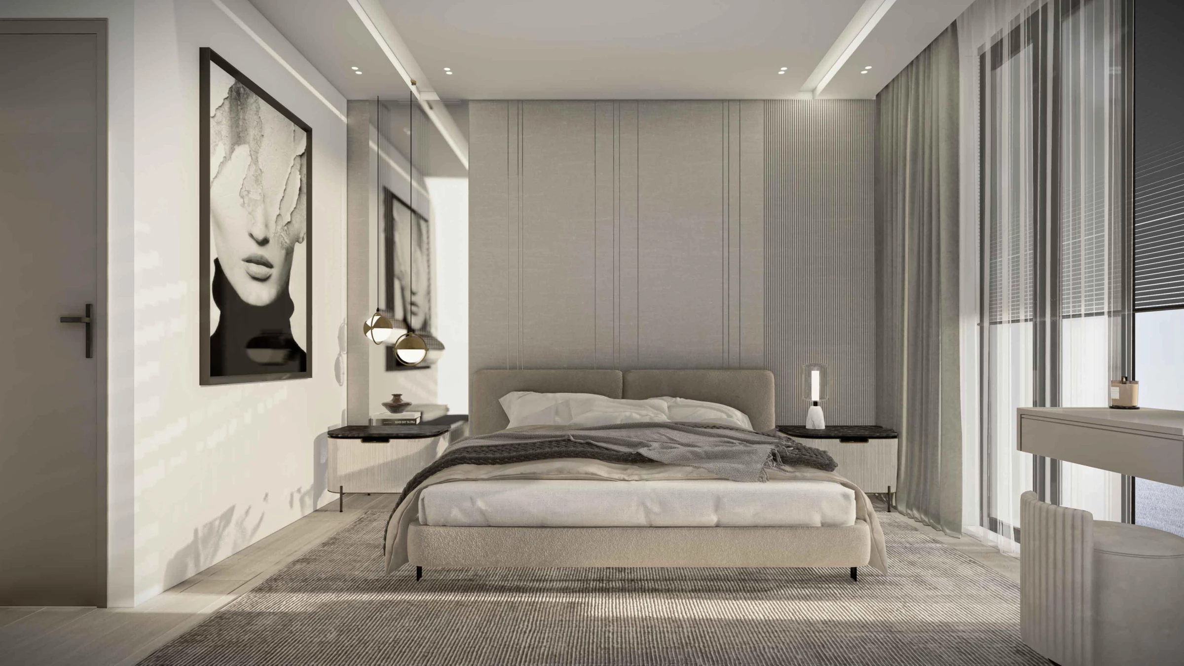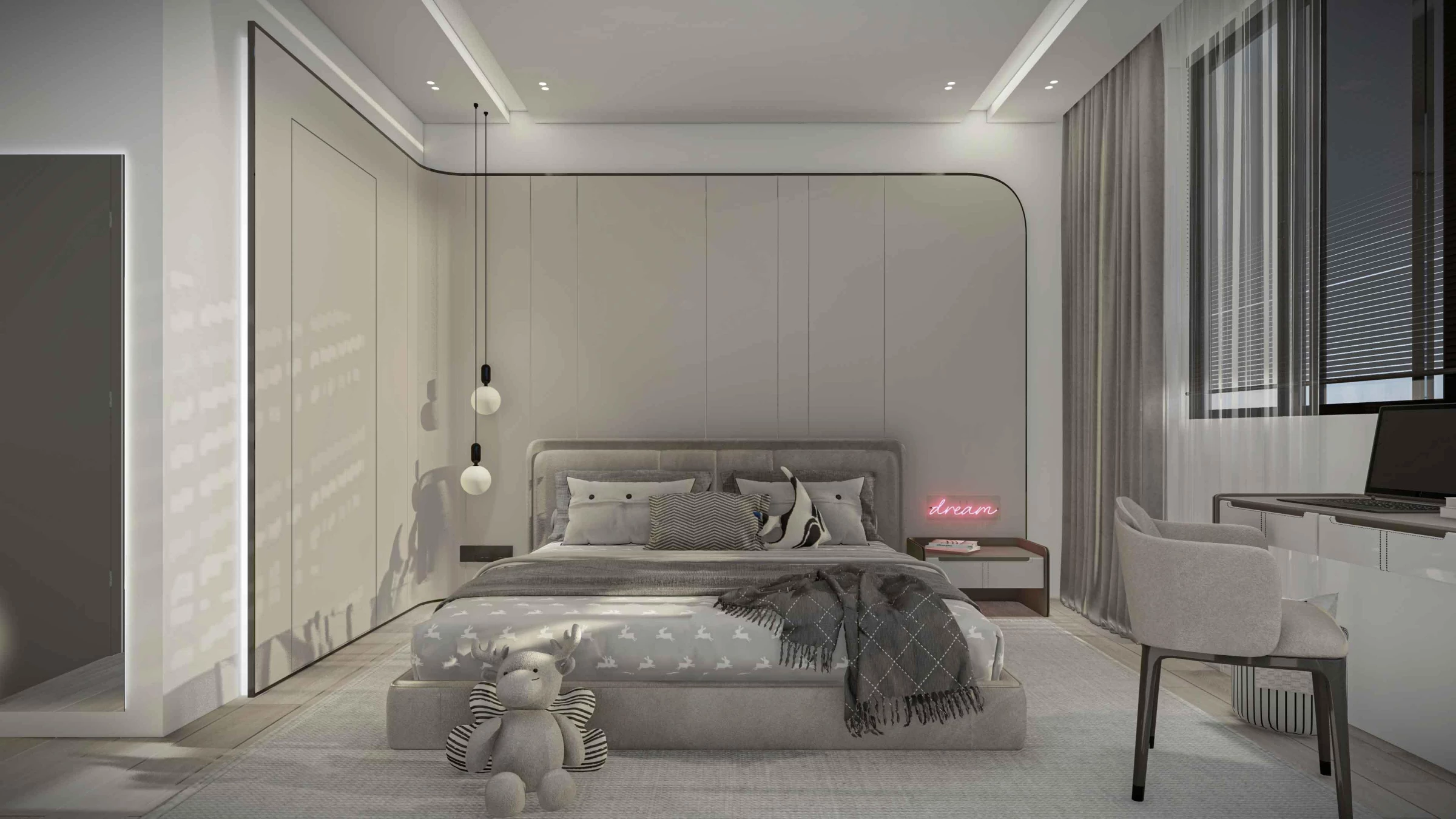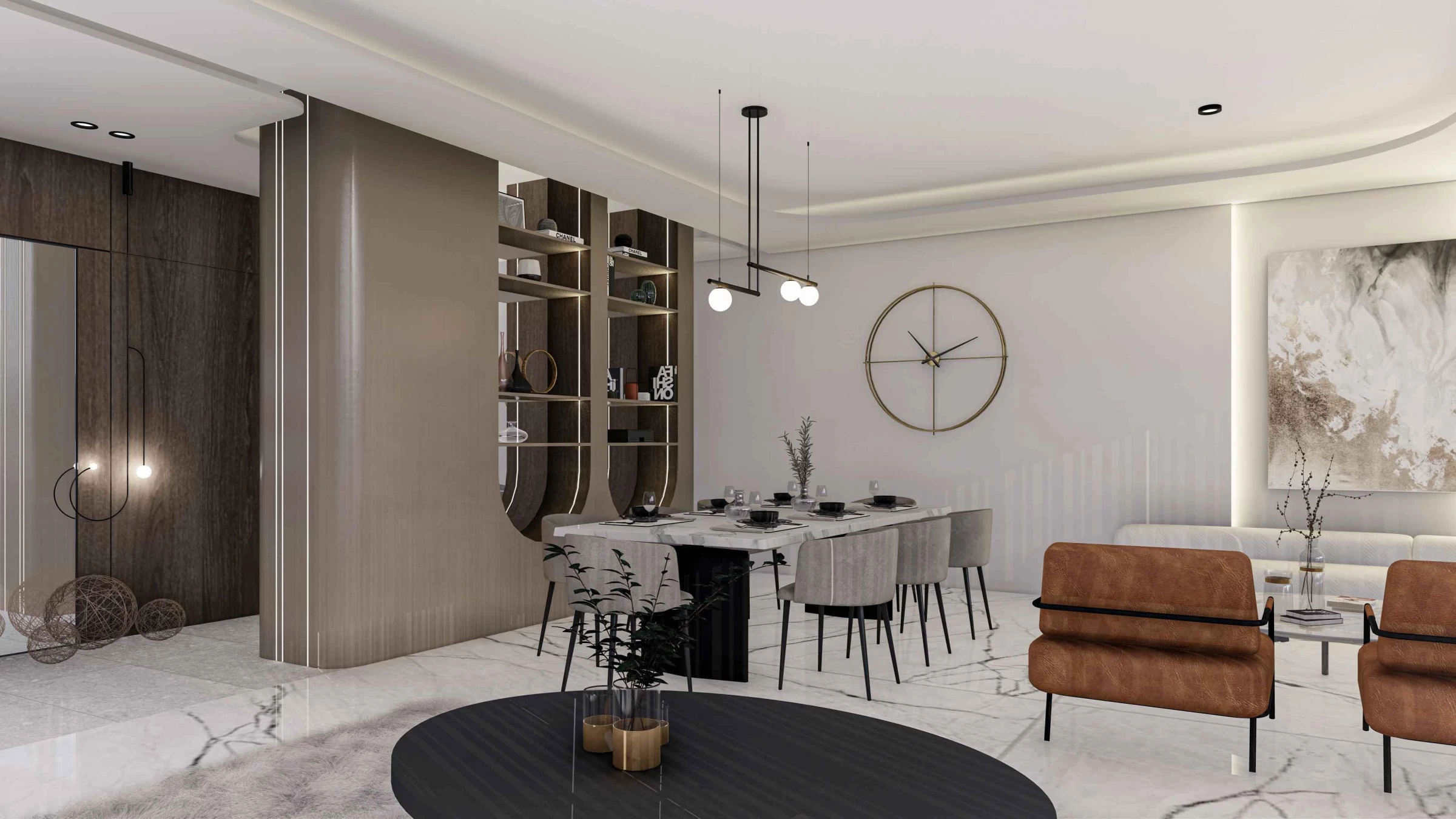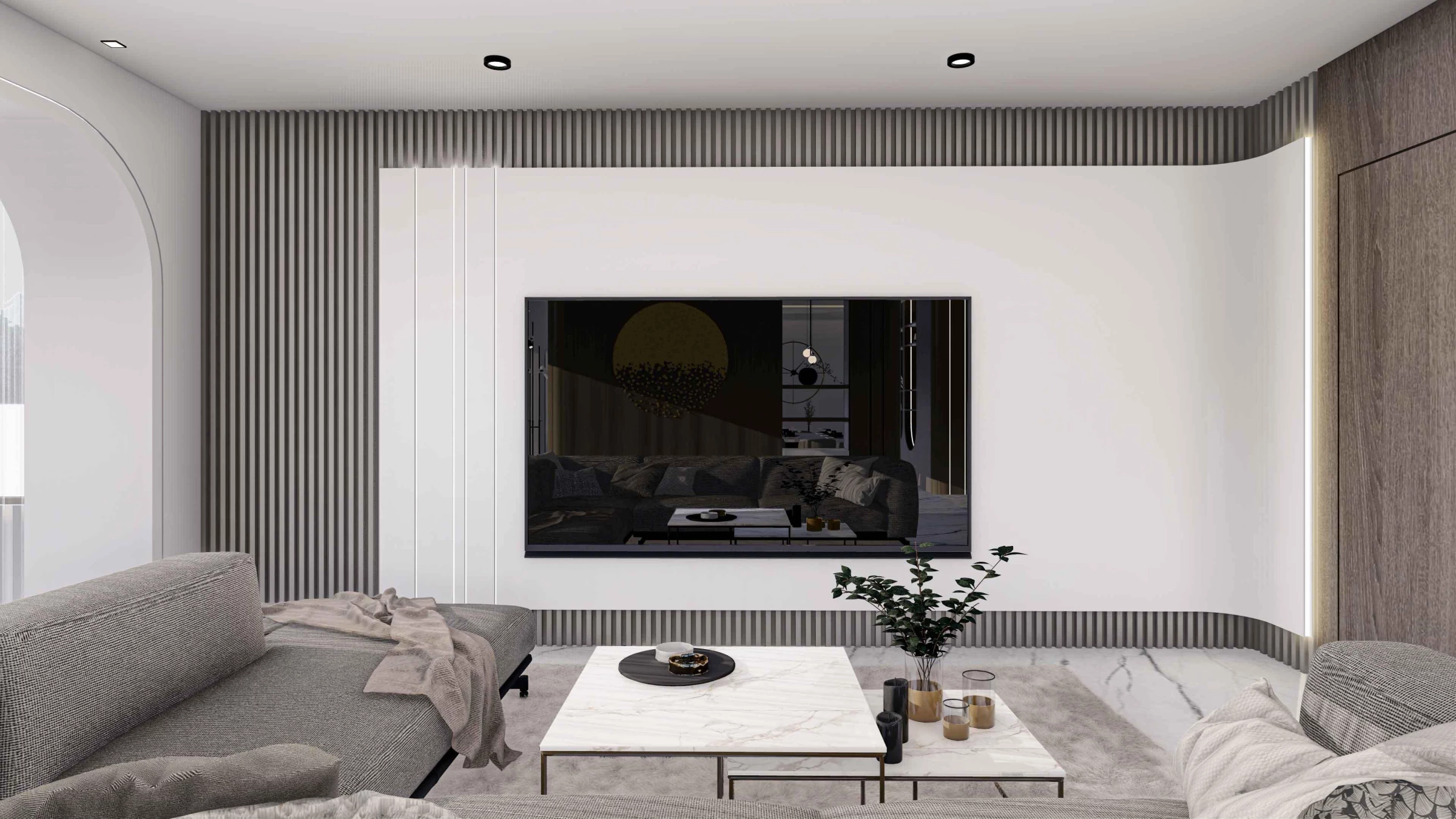 The interior design of the apartment used French interior hues, incorporating rounded arches and corners that are both decorative, and help to eliminate any sharp corners to give a sense of a larger space and continuity. The ceiling were deigned in curved lines as well to compliment and reflect the interior wall treatment.